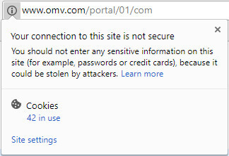 So sah der Hinweis von Chrome bei HTTP-Websiten bisher aus