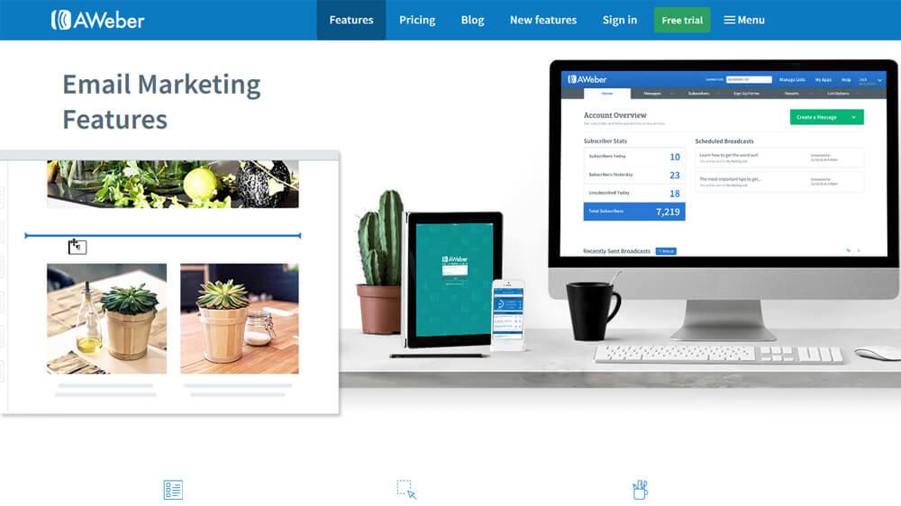 Wie bei den meisten E-Mail-Systemen und Newsletter-Tools liegt bei AWeber der Fokus auf der Automatisierung des Marketing-Funnels. Das funktioniert aufgrund des einfachen Ablaufs beim Aufbau der zu versendenden Mails ganz gut. Natürlich nimmt man den Mund ein wenig voll, wenn man behauptet, dass mit wenigen Newslettern der gesamte Marketing-Funnel optimiert wird. Jedoch ist diese Aussage deutlich weitreichender gedacht. Denn durch einheitlich, leicht verständliche und ansprechende E-Mails kann nachhaltig ein positiver Eindruck bei Klienten oder Käufern hinterlassen werden. Da AWeber über 750 ansprechende Vorlagen für Mails und Newsletter bereitstellt, ist es ein Leichtes, sich dabei von anderen abzuheben. Dass diese Mail-Templates, wie auch bei fast allen anderen Mail-Software-Anbietern für mobile Geräte wie Smartphones und Tablets optimiert sind, ist dabei selbstverständlich.