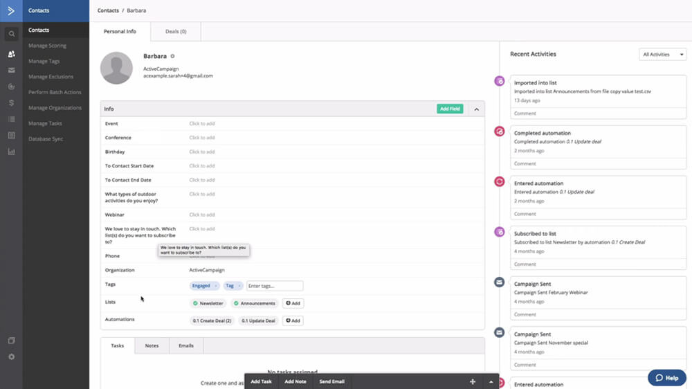 Auch ActiveCampaign beherrscht mehr als Newsletter-Marketing. Mehrere Online-Marketing-Features werden geboten.