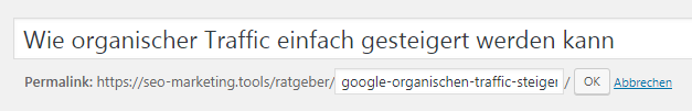 - Einfache URLs: URLs von Beiträgen sollen bereits beim Erstellen möglichst kompakt gehalten werden; mehr als ein paar Keywords braucht es gar nicht