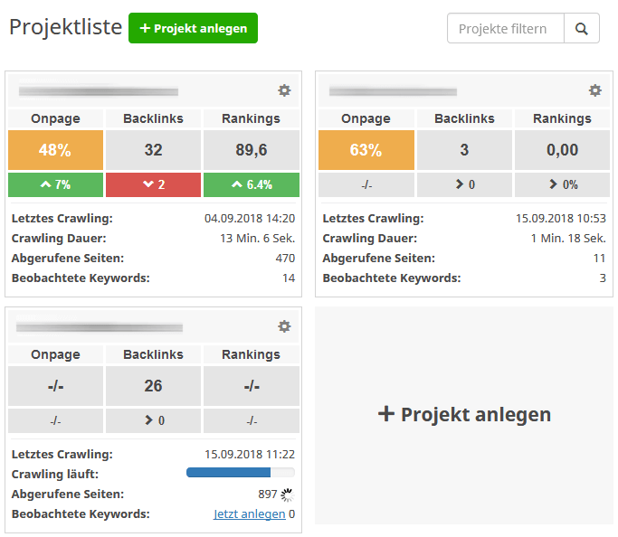 In der Projektübersicht findet man alle relevanten Informationen, die Auskunft zur gewählten Website geben. Das sind unter anderem