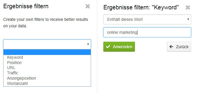 Im Werbemodul werden SEA-Faktoren behandelt. Beworbene Keywords, Display-URLs und die Anzeigen von Konkurrenten können dort analysiert werden. Sollte man besonders viele Werbeanzeigen parallel schalten, bietet das SISTRIX SEO Tool die Möglichkeit der Erstellung von eigenen Filtern. Das gilt zwar nicht nur für das Ads Modul, sondern die gesamte SISTRIX Toolbox. Am ehesten benötigt man es aber dort, wo eine große Anzahl an Einträgen vorhanden ist. Das kann bei Werbeanzeigen bzw. Display-Ads durchaus der Fall sein. Aus diesem Grund empfehlen wir den Filter zu verwenden, wenn es andernfalls unübersichtlich sein sollte. Der englische Beschreibungstext trotz der deutschen Spracheinstellung dürfte an einer fehlenden Übersetzung liegen.
