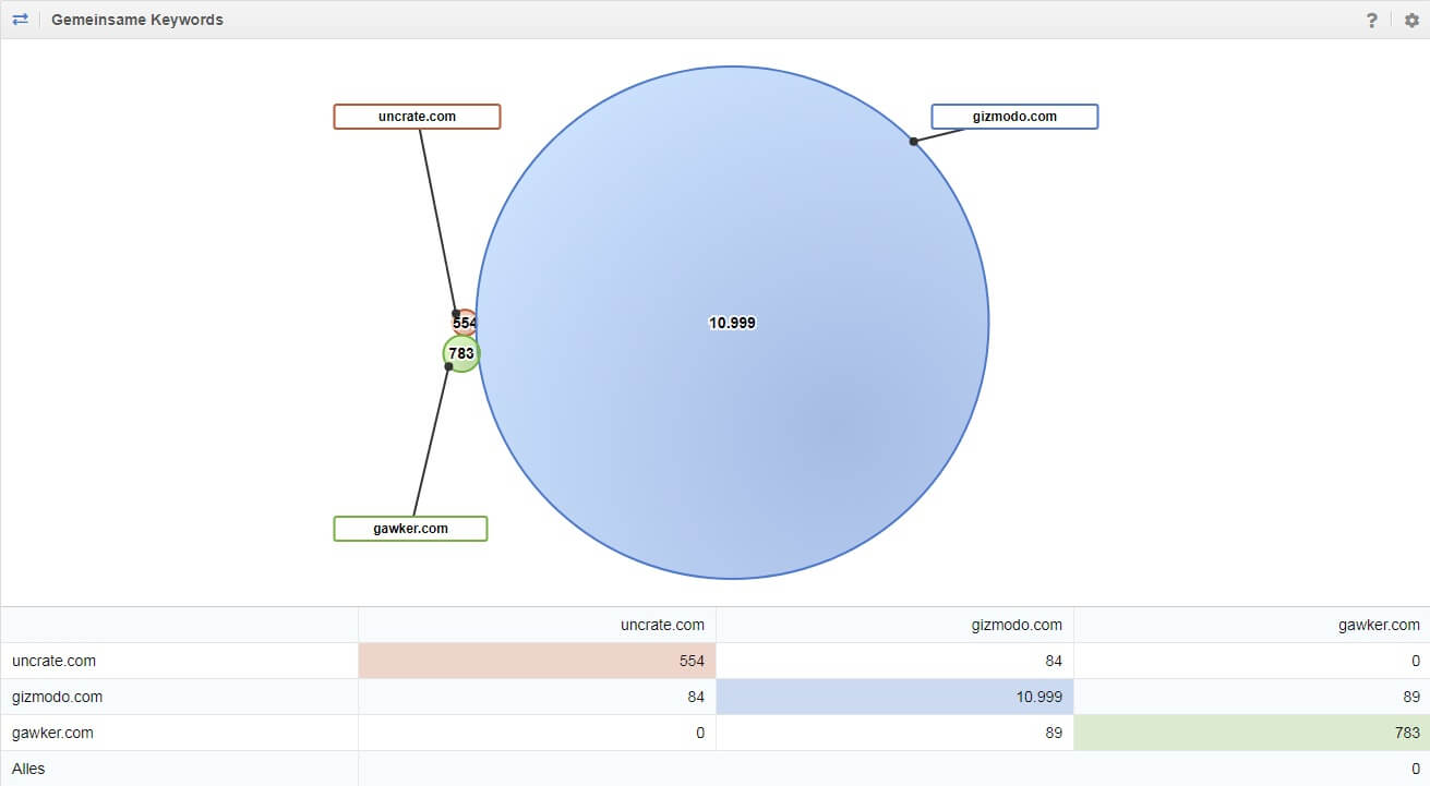 Eben noch grob angesprochen gibt es für Konkurrenzwebsites auch noch eigene Kategorien, wo das Thema näher im Detail behandelt wird. Konkurrenten, die man noch gar nicht kannte, wurden in unserem SISTRIX Tool Test identifiziert. Auch Keyword-Schnittmengen können erhoben werden. Das kann sich als nützlich erweisen, wenn man der Konkurrenz ganz bewusst ein wenig zusetzen möchte. Chancen sind vor allem dort vorhanden, wo man selbst und die Konkurrenz thematisch aktiv ist, jedoch noch keinen Fokus auf bestimmte Keywords gesetzt hat. SISTRIX erkennt solche Chancen und zeigt diese übersichtlich an.