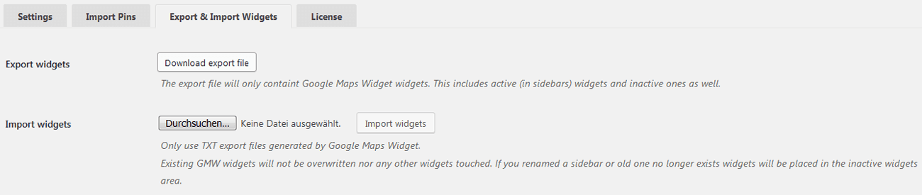 Sollte eine Website migriert werden, können Karteneinstellungen mit Hilfe der eingebauten Import-/Exportfunktionen einfach aufbewahrt und umgesiedelt werden.