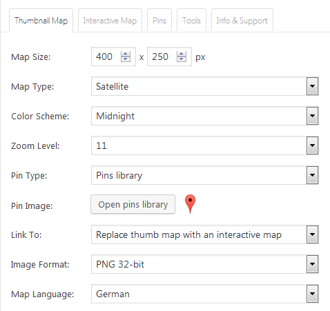 Die Sprache der Google Maps Karte kann ebenfalls angepasst werden. Dadurch ist dafür gesorgt, dass alle Navigationspunkte und Tool-Tips in der gewünschten Sprache vorhanden sind. Sollte man eine Karte stark modifiziert haben, kann man diese mit nur einem Klick duplizieren. Dadurch erhält die nächste Karte dieselben Einstellungen. Trotz der vielen Möglichkeiten, das Plugin als Widget einzubauen, kann es zusätzlich mit Hilfe von Shortcodes verbaut werden. Das kann für diverse Sonderfälle gelegen kommen.